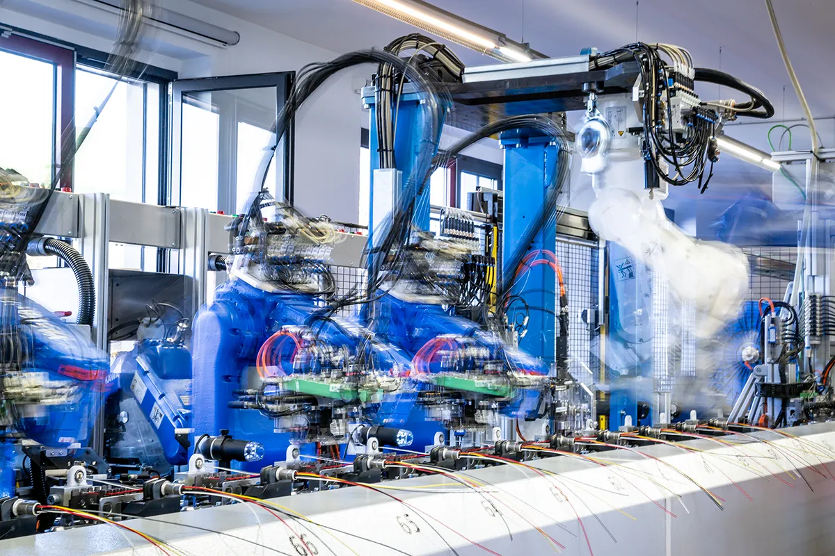 Komplettbearbeitung der Sensorleitungen, Montage von Tüllen bis hin zum Anspritzen unterschiedlicher Anschlussstecker.
